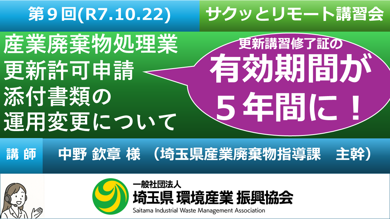 第9回 産業廃棄物処理業更新許可申請添付書類の運用変更について